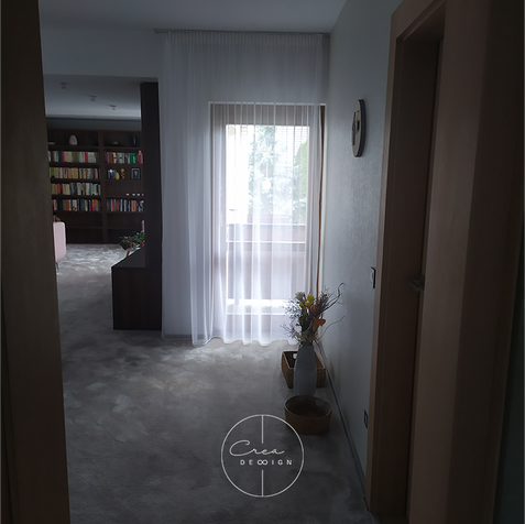 Majitelia pri zariaďovaní chceli vzušnosť a skončili s prázdnotou a nudou. Takže som priestor efektívne využila nielen chýbajúcimi úložnými priestormi, ale aj pracovným kútikom, skrytou tlačiarňou a archívom rodiny. Pôvodne klientka pracovala na jedálenskom stole.